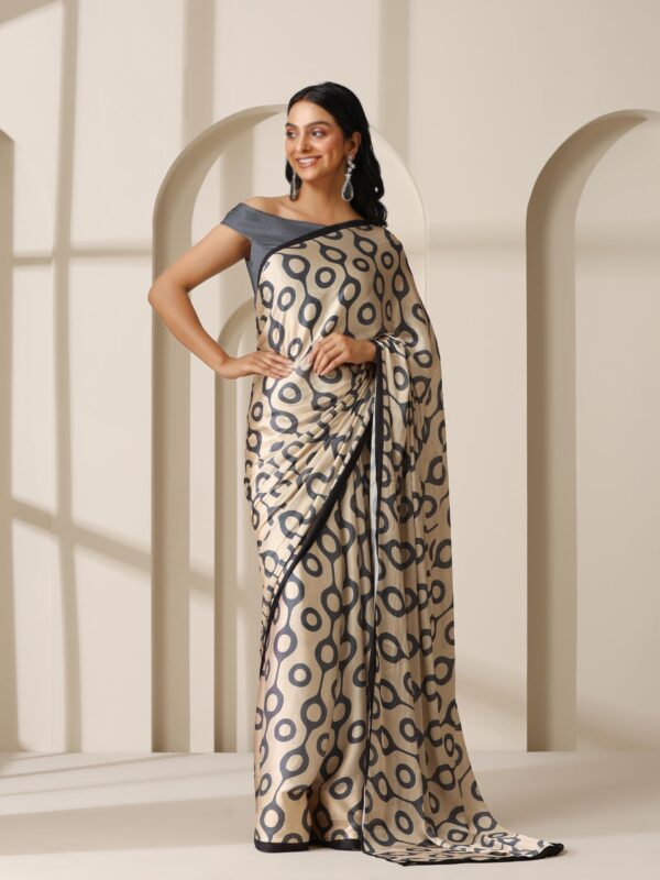Grey Satin Printed Saree with Subtle Texture and Blouse