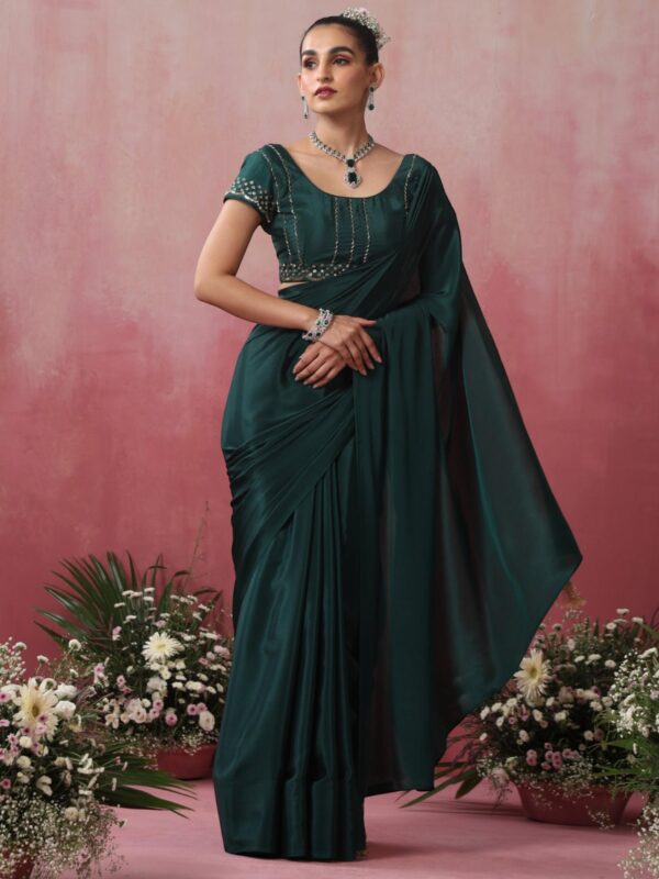Healthify Crepe Saree with Hand Embroidered Blouse Fabric