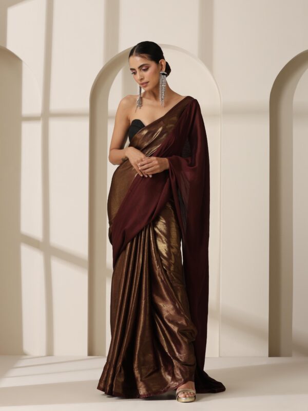Gold Chocolate Chiffon Saree with Rich Festive Mood