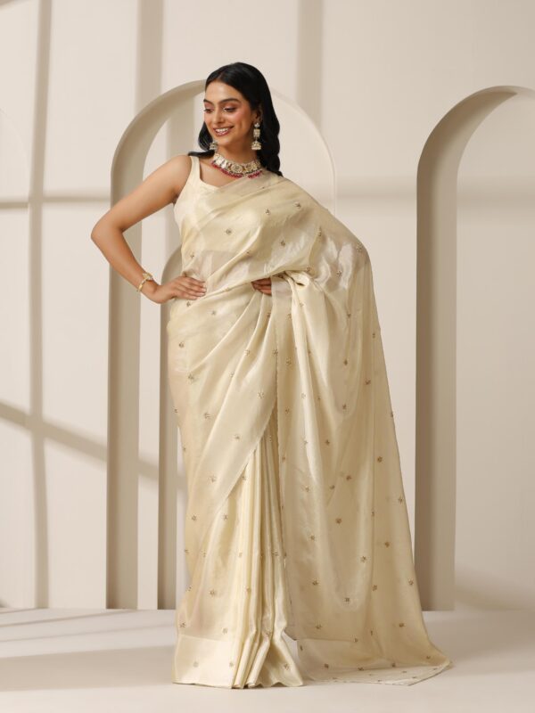 Pure Tissue Saree with Heavy Hand Bead Embroidery and Blouse