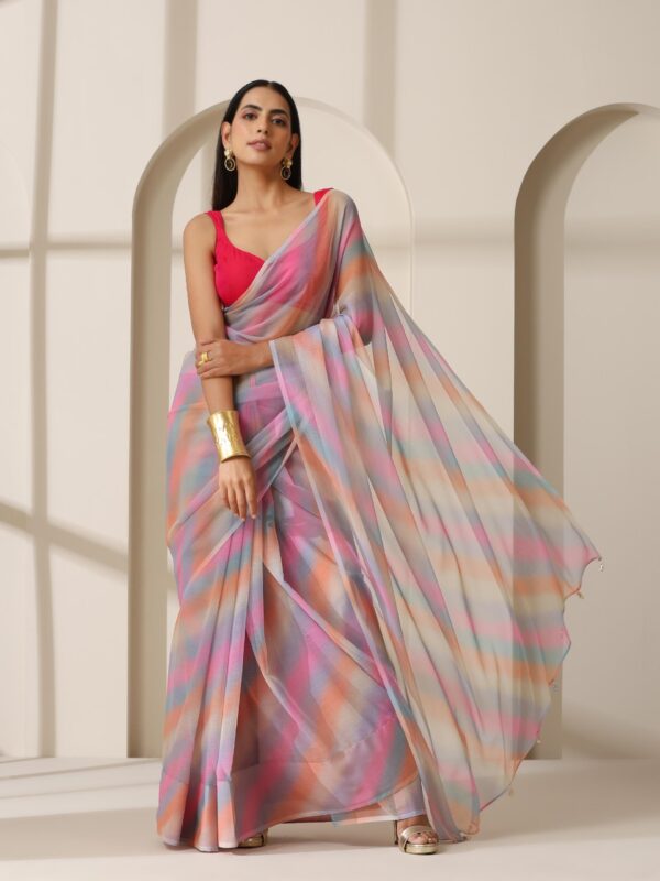 Desert Fairy Printed Chiffon Saree with Bold Fuchsia Contrast Blouse
