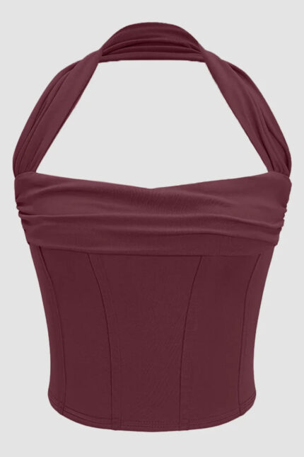 Maroon Structured Corset Style Halter Neck Top