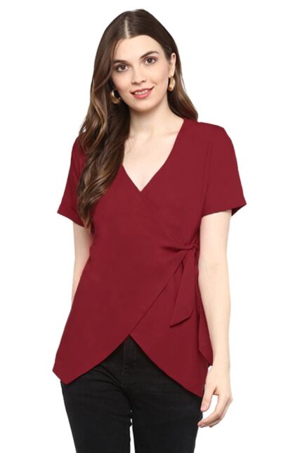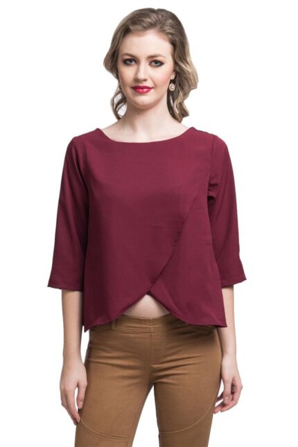 Maroon Womens Elegant Casual Crop Top