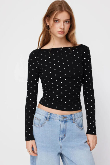 Polka Dot Ruched Full Sleeve Cute Everyday Top