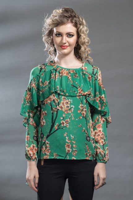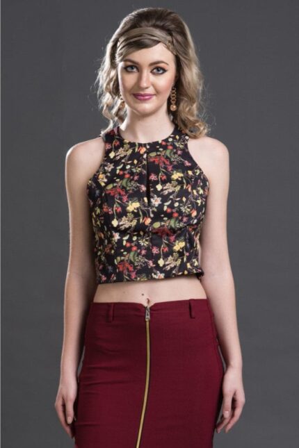Printed Ruffles Front Lace Corset Inspired Top