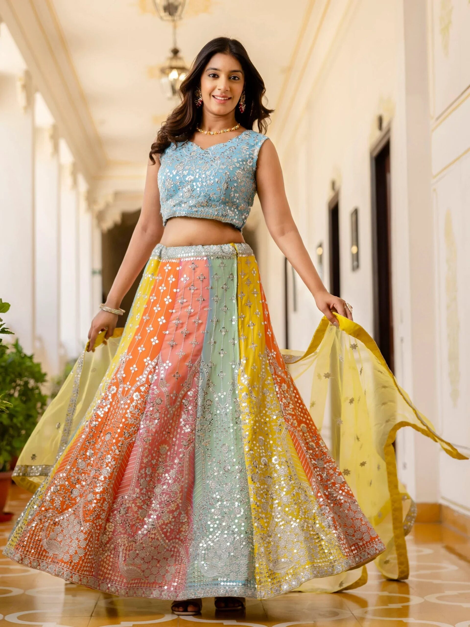 Be the first to review “Adoring Multi Color Sequins Georgette Lehenga Choli With Dupatta” Cancel reply