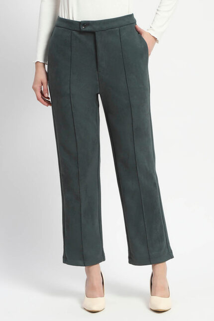 Green Tapered Fit Women Trousers for Office and Daily Styling