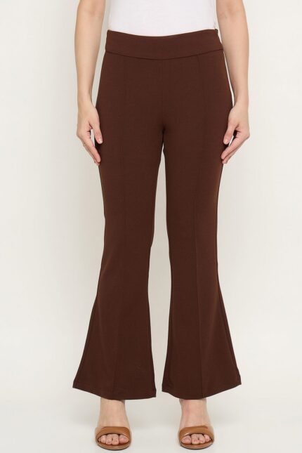 Brown Flared Fit Women Trousers for Elegant Long Silhouette