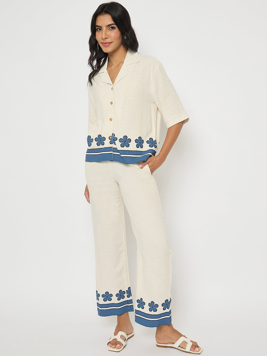 This beige co-ord set features contrast detailing and a soft rayon blend. Perfect for travel or brunch, wear it as a set or mix and match for versatile styling.