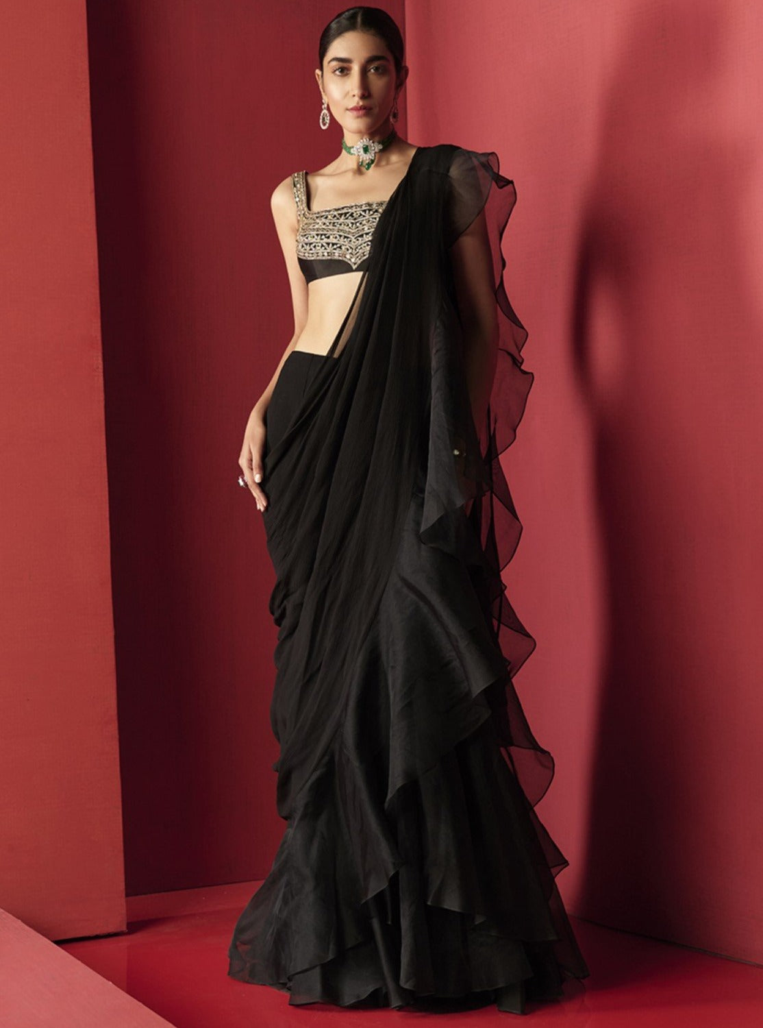 Black Draped Saree with Blouse for Women Party Wear