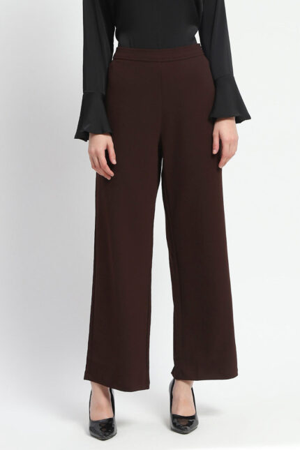 Coffee Brown Elasticated Waist Straight Fit Women Trousers