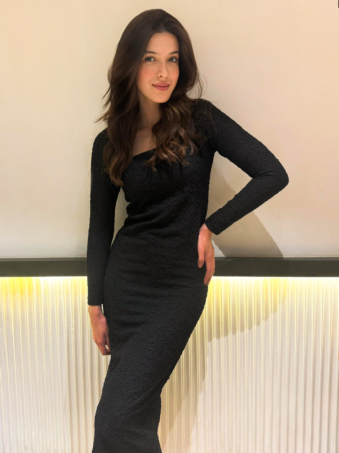 Be the first to review “Black Self Design Waffle Texture Midi Sheath Dress” Cancel reply