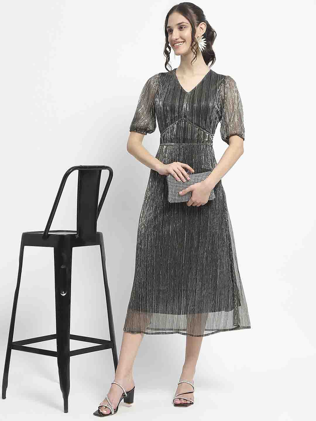 Be the first to review “Black Shimmery Corset Detail Puff Sleeve Midi Dress” Cancel reply