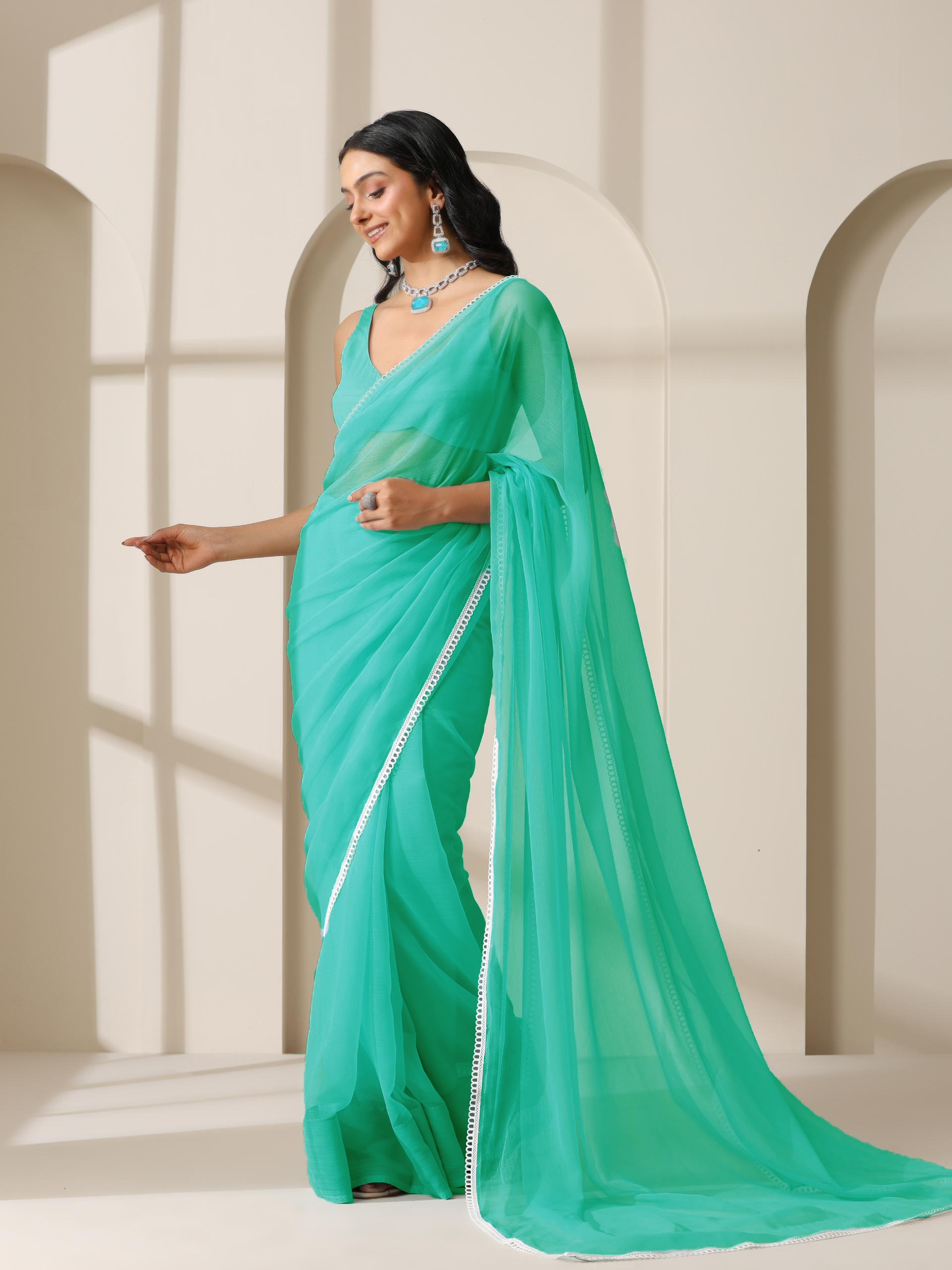 Blue Ice Chiffon Saree with Lace and Soft Blouse