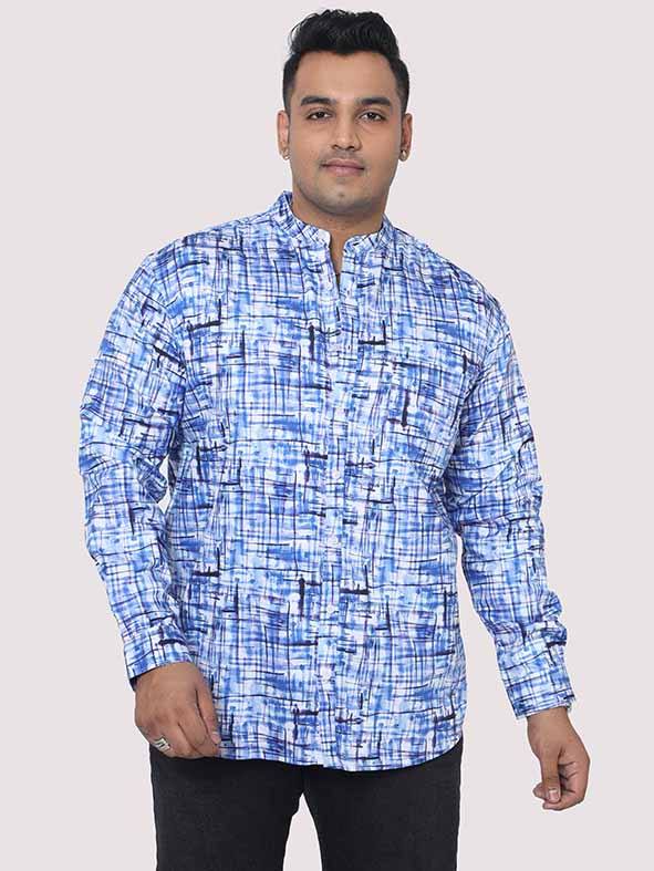 Blue Mosaic Mandarin Collar Men Plus Size Shirt