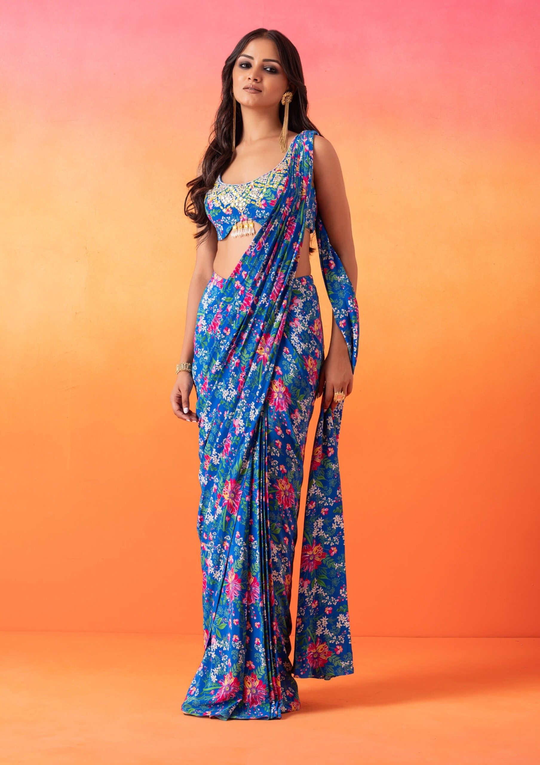 Be the first to review “Blue Printed Saree with Blouse for Women Party Wear” Cancel reply