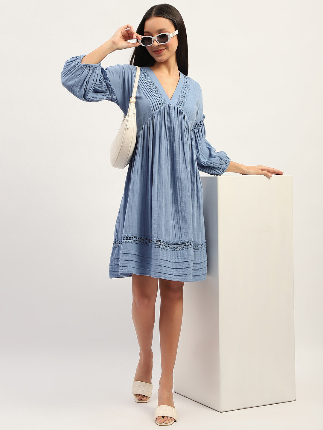 Be the first to review “Blue Puff Sleeve Fit and Flare Cotton Midi Dress” Cancel reply