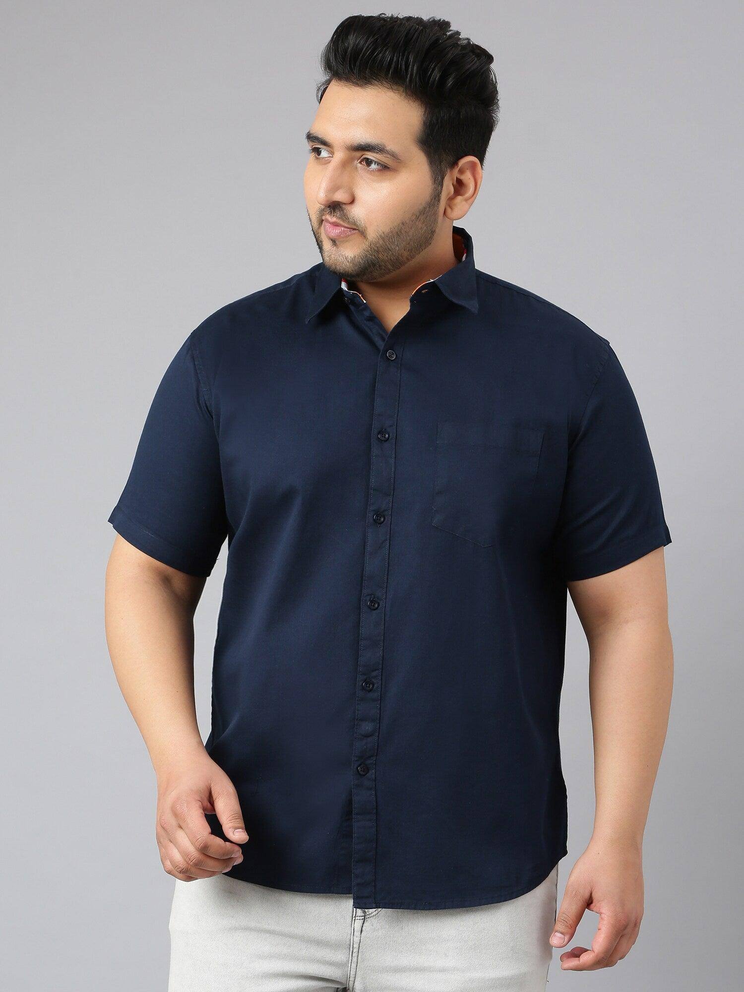 Blue Pure Cotton Men Plus Size Half Sleeve Shirt