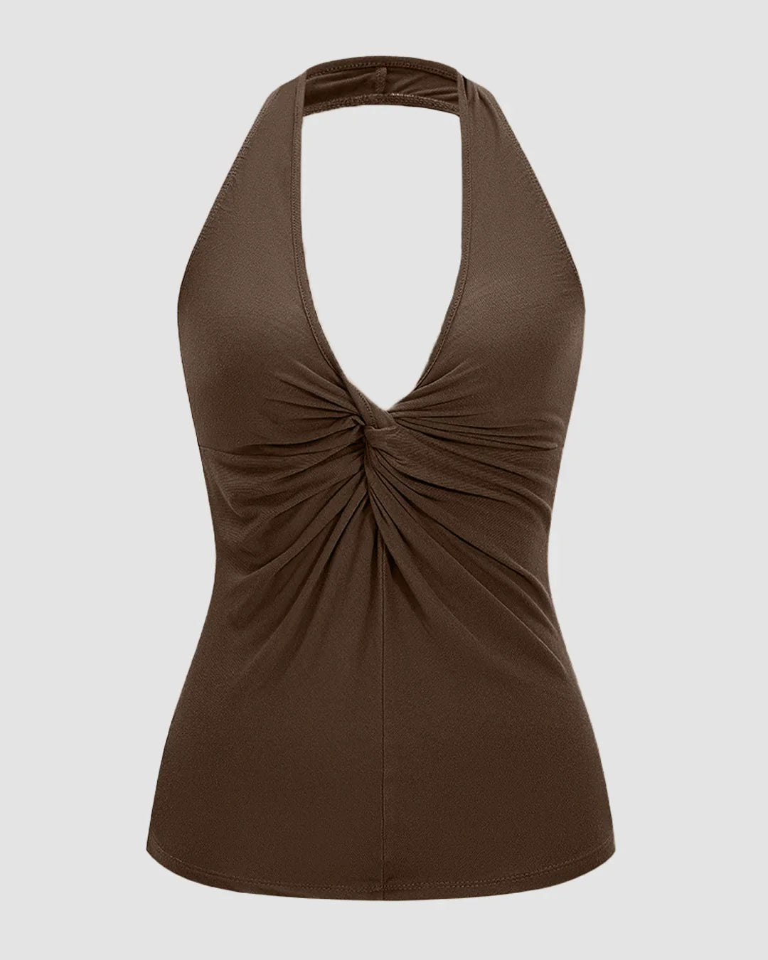 Brown Halter Neck Ruched Elegant Everyday Top