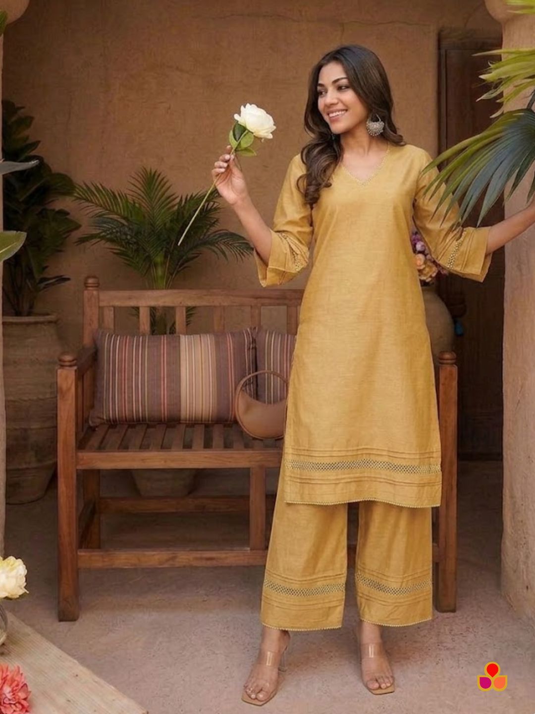 Be the first to review “Canary Yellow Silk Straight Kurti with Straight Palazzo” Cancel reply