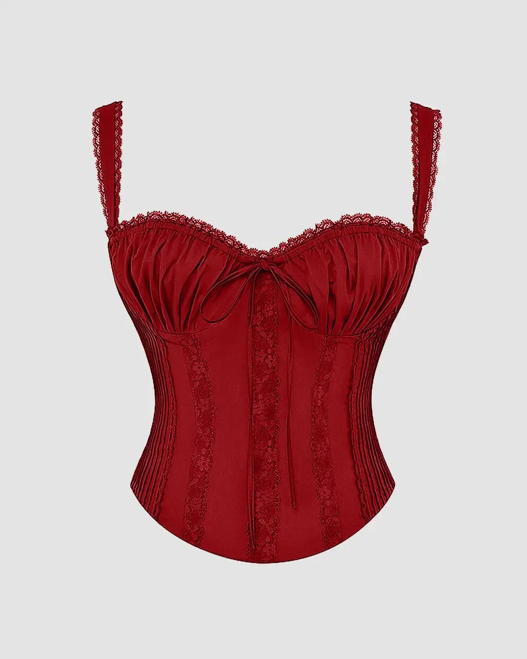 Romantic lace trim makes this cherry red corset top feel luxe