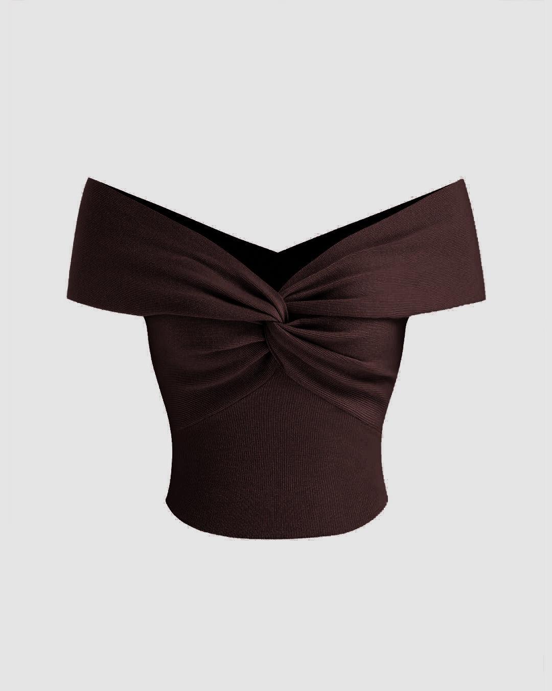 Ruched detailing creates soft structure in this off shoulder crop top