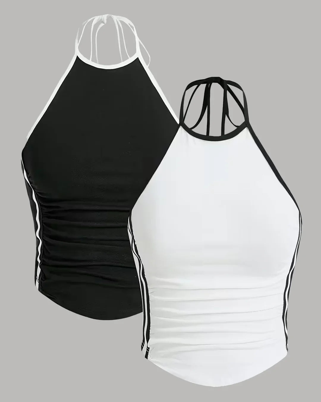 White and Black Halter Neck Lace-Up Sleeveless Top comes with a clean, flattering shape and a soft tie-up front that adds a nice detail. This Lace-Up Sleeveless Top has a fitted feel, a smooth halter neckline, and a cropped length that pairs well with almost anything. The white colour keeps the look fresh and minimal, making it easy to wear for day or evening plans.