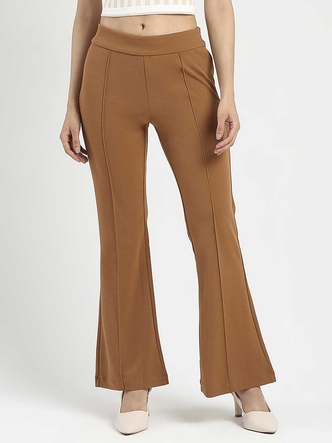 Brown Flared Fit Women Trousers for Elegant Long Silhouette