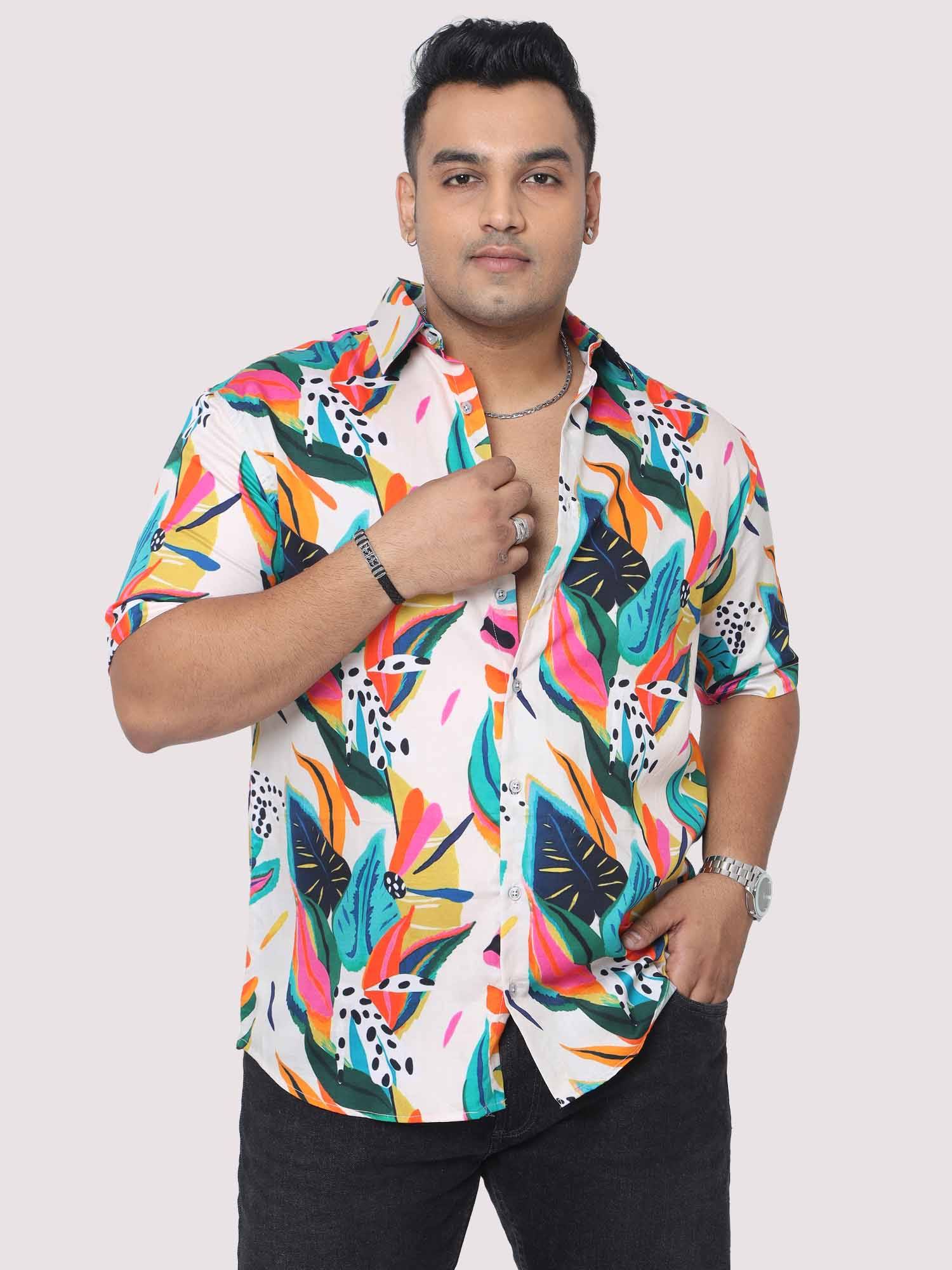 Coloured Leaf Pattern Digital Men Plus Size Half Sleeve Shirt