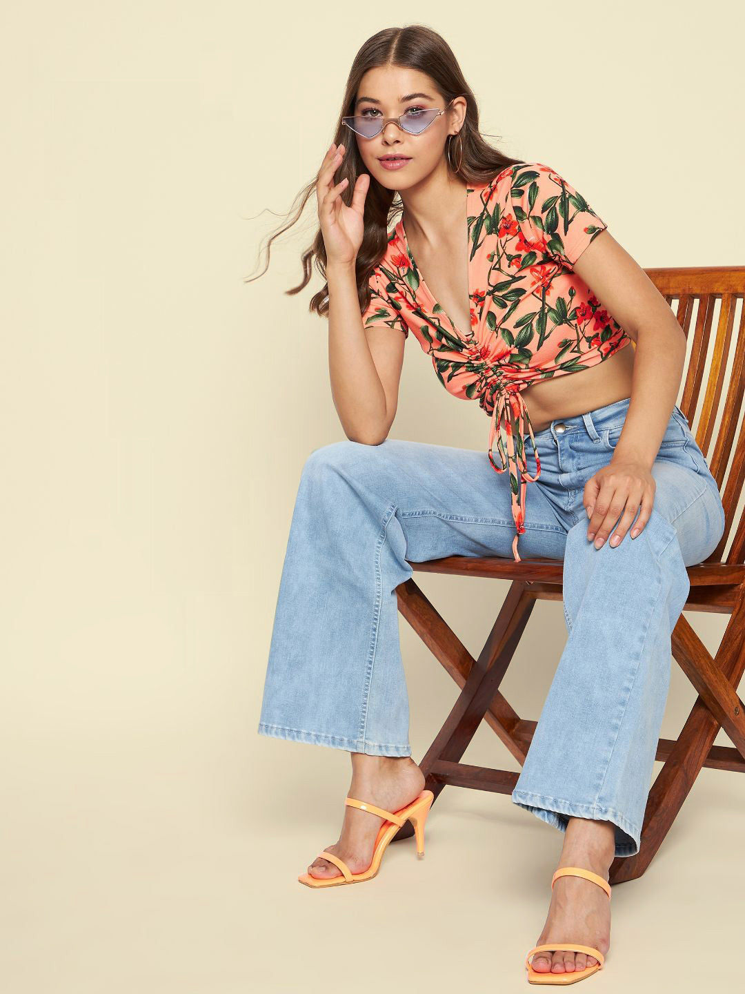 Cotton Stretchable Front Drawstring Crop Top for Women Casual Wear