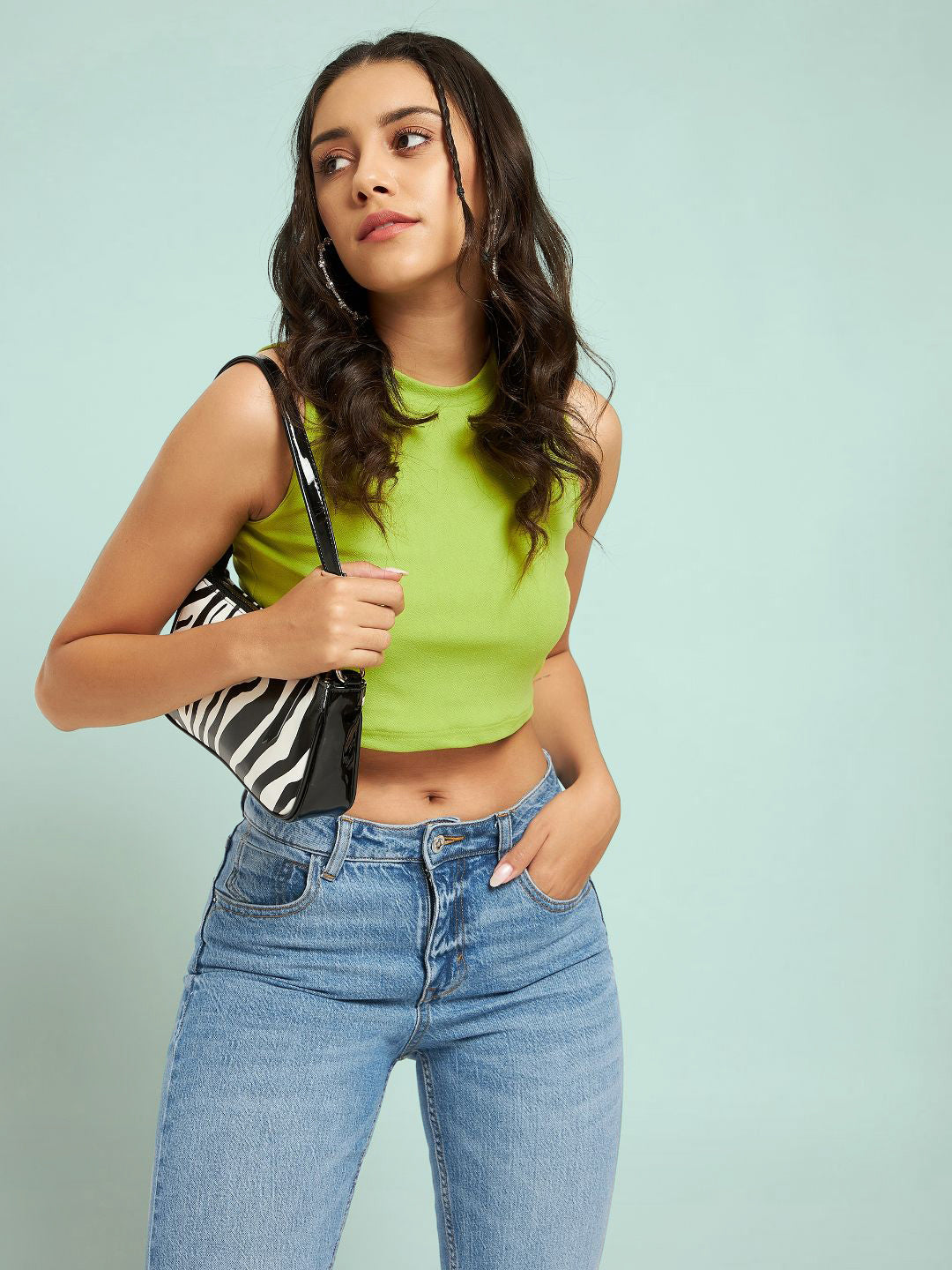 Cotton Stretchable High Neck Crop Top for Women Casual Wear