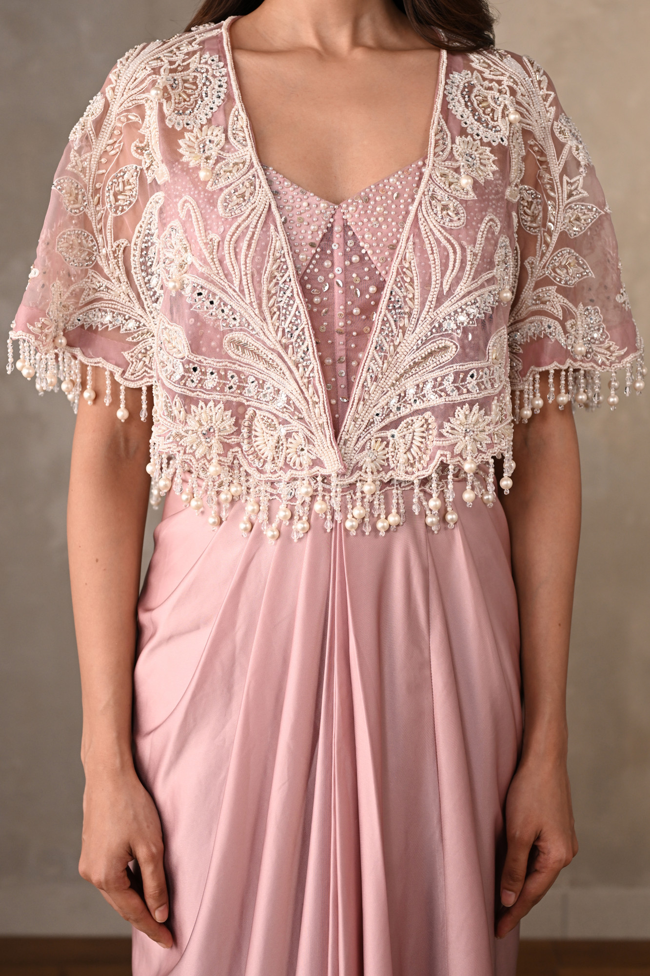 Comfortable yet striking, this satin Embroidered Gown can be styled with statement jewelry and heels for a refined and show-stopping ensemble. A perfect choice for women who appreciate designer fashion with a graceful appeal.