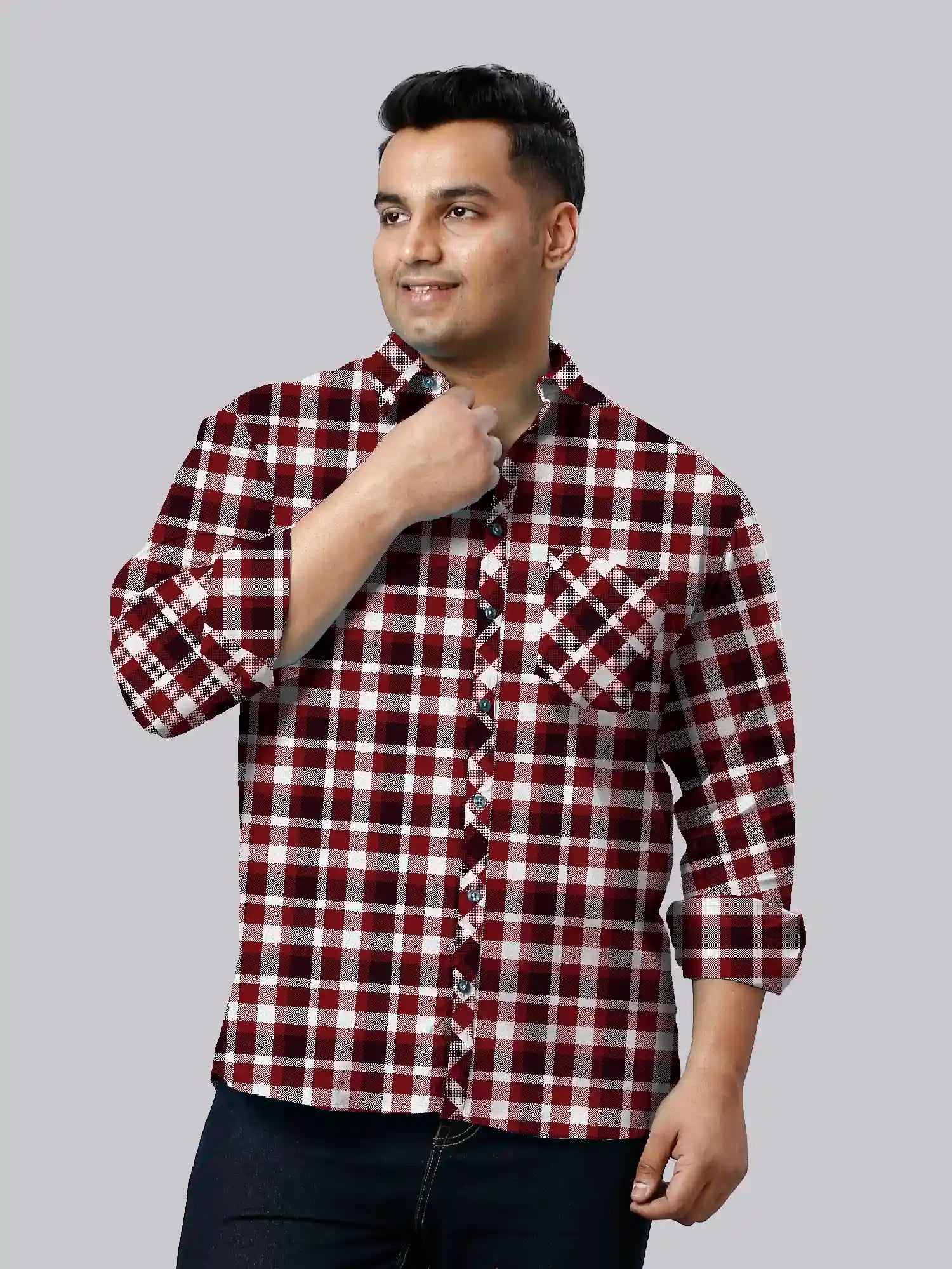 Plus Size Men Regular Fit Maroon and Black Checked Cotton Shirt