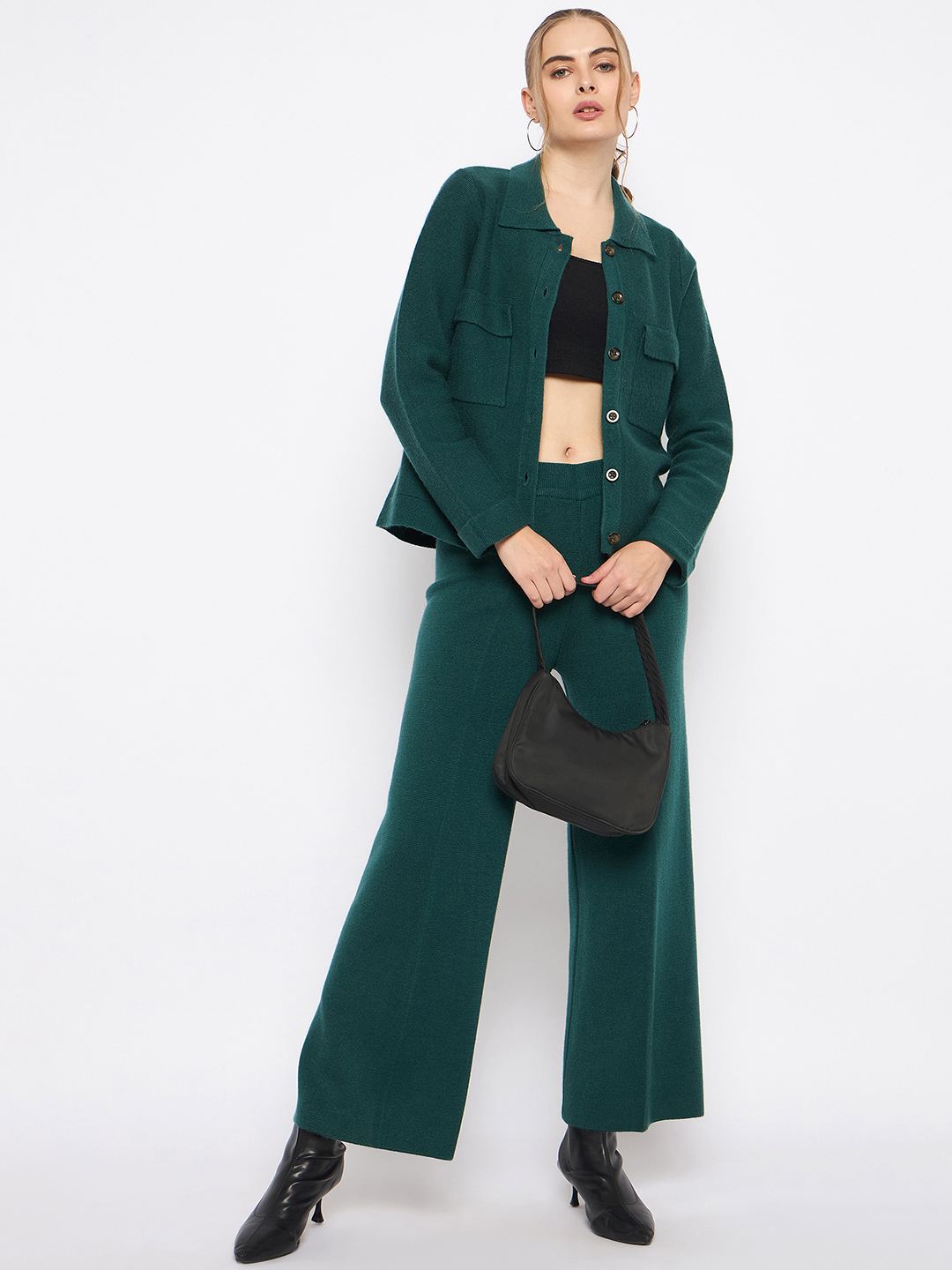 The shirt features a soft nylon blend that feels luxurious against the skin while providing breathability for all-day wear. Its vibrant green hue adds a refreshing pop of color to your outfit, making it ideal for both casual outings and more polished events. The shirt features subtle detailing that enhances its chic appeal. Pair it with the straight-fit bottoms, which are crafted to offer a sleek and streamlined look. The straight-fit bottoms are designed with versatility in mind. The co-ord set is perfect for mixing and matching with other pieces in your wardrobe, whether you want to dress it up with heels or keep it casual with sneakers.