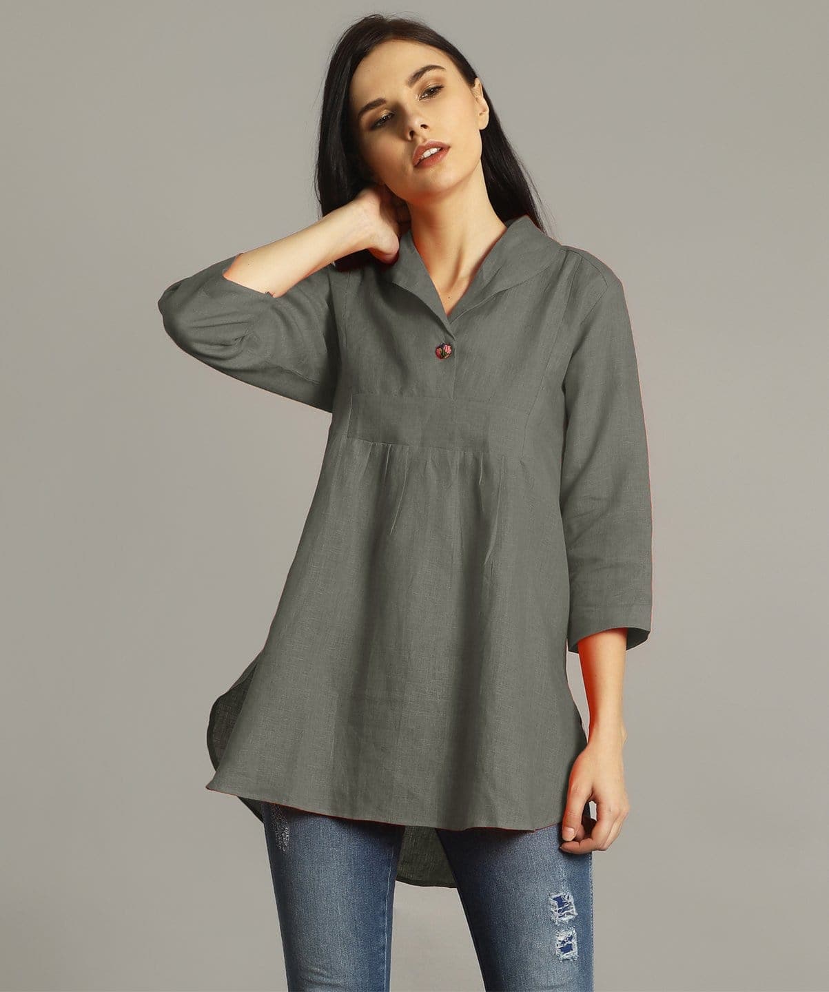 Be the first to review “Grey High Low Linen Tunic Top for Women Casual Wear” Cancel reply