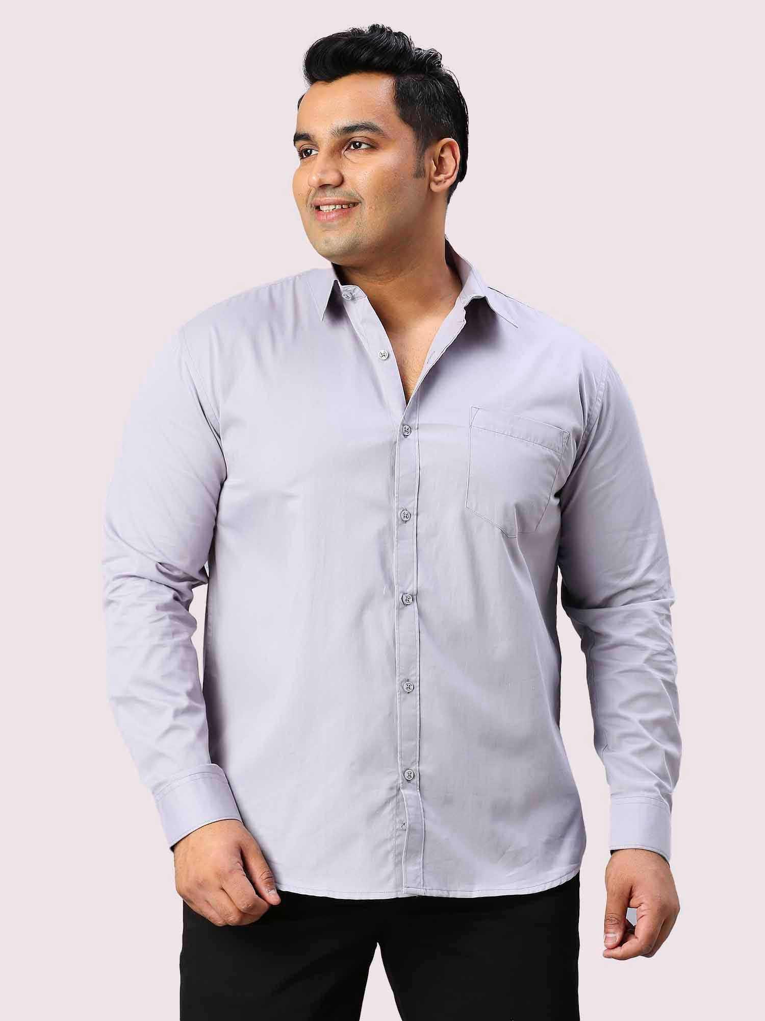 Grey Solid Pure Cotton Full Sleeve Shirt Men Plus Size
