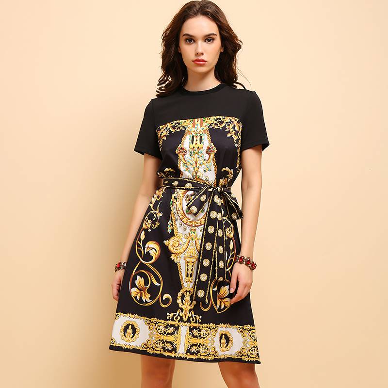 Cotton Polyester?Print Pattern Sequined Decoration Short Sleeve Mini Dress