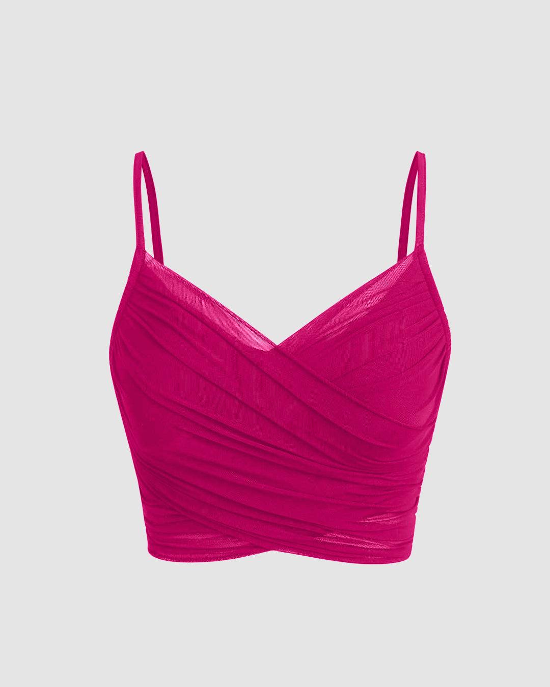 Home Tops Hot Pink Mesh V-Neck Ruched Strappy Party Crop Top