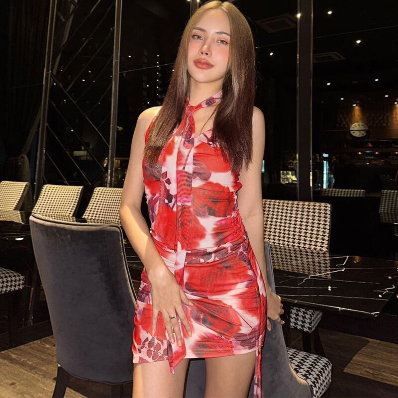 Sleeve Style: Spaghetti Strap Sleeve Length: Sleeveless Silhouette: Sheath Pattern Type: Floral Neckline: Square Collar Material: Polyester Material: Spandex Fit Type: Slim Fit Elasticity: High Stretch Dresses Length: Above Knee, Mini Closure Type: Pullover