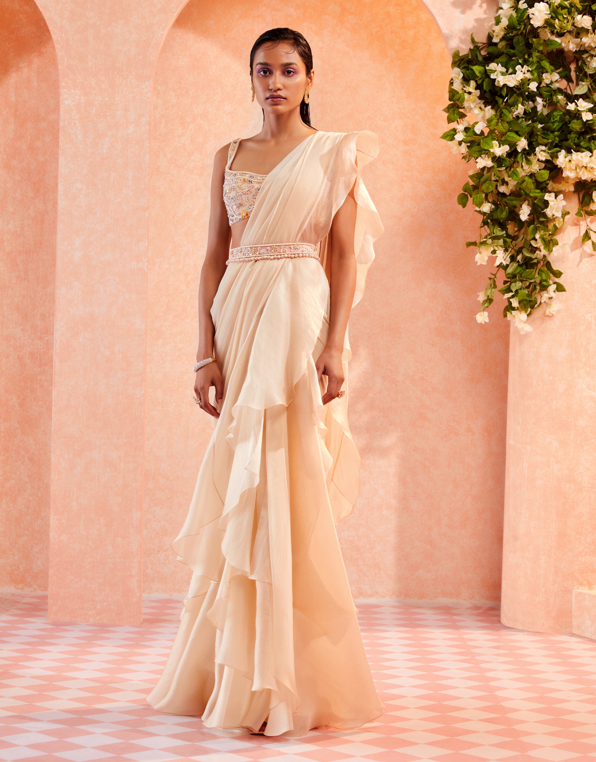 Components:?Saree, blouse and belt