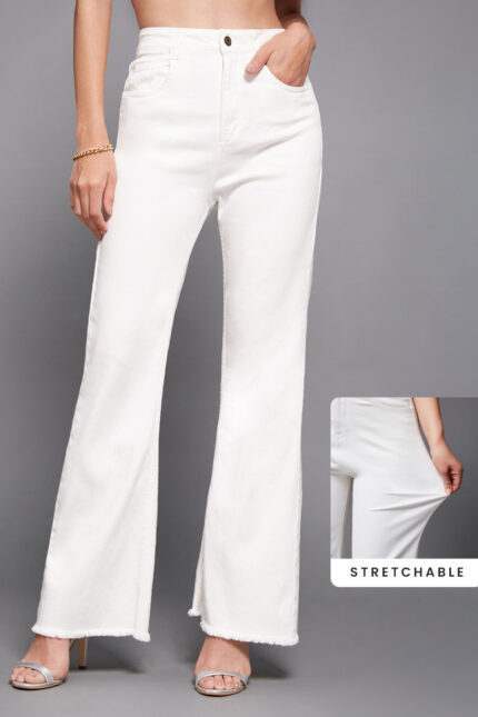 White High Rise Bootcut Stretch Denim Jeans with Minimal Look