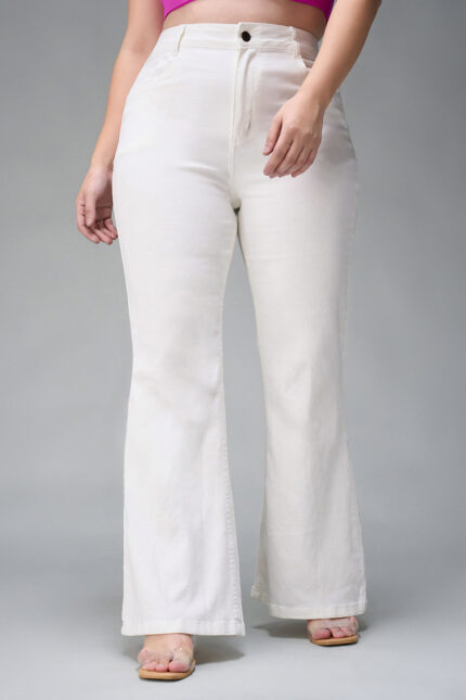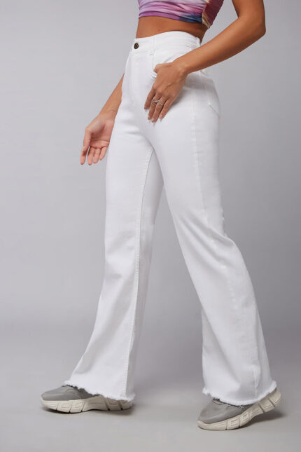 White High Rise Bootcut Stretch Denim Jeans with Minimal Look