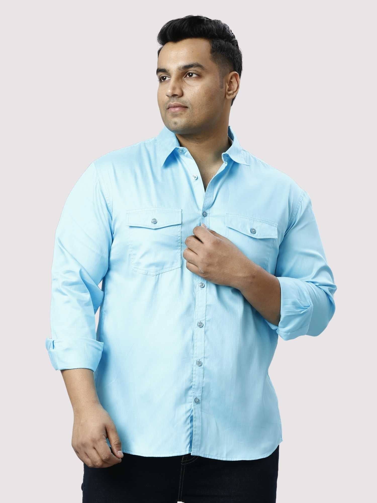Light Blue Pure Cotton Double Pocket Full Sleeve Shirt Men Plus Size