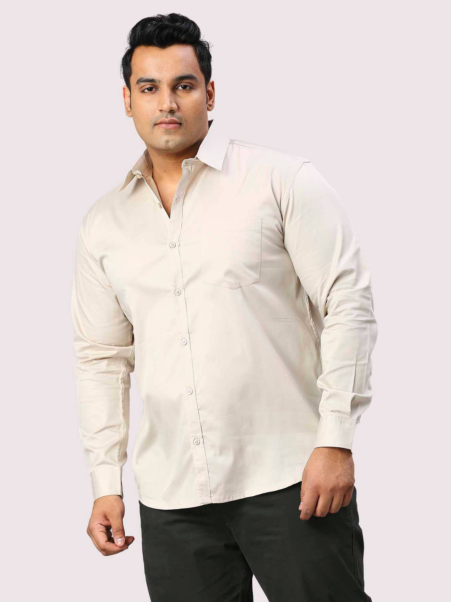 Light Cream Pure Cotton Full Sleeve Shirt Men Plus Size