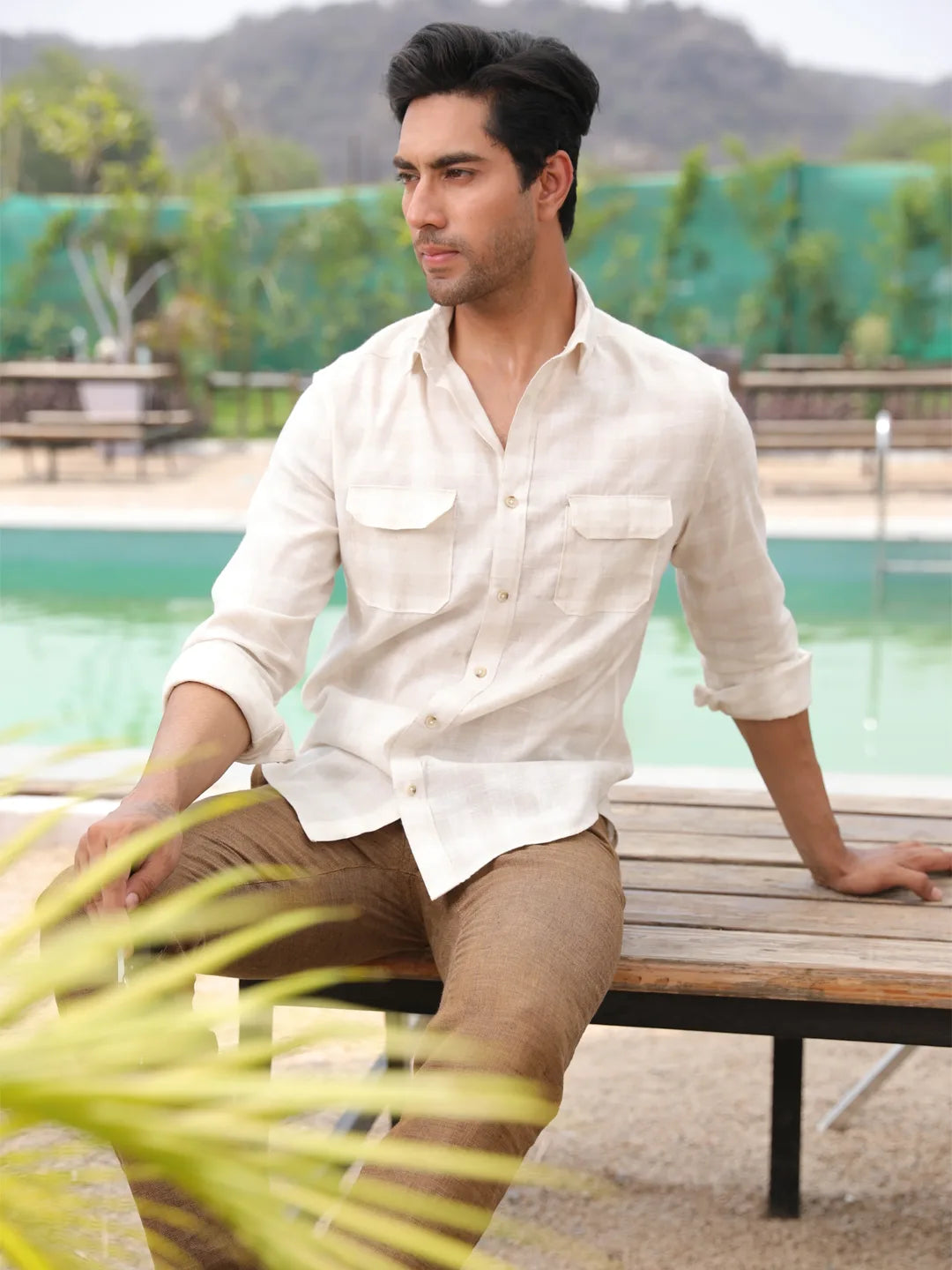 Be the first to review “Light Khaki and Cream Checkered Linen Cotton Summer Shirt” Cancel reply
