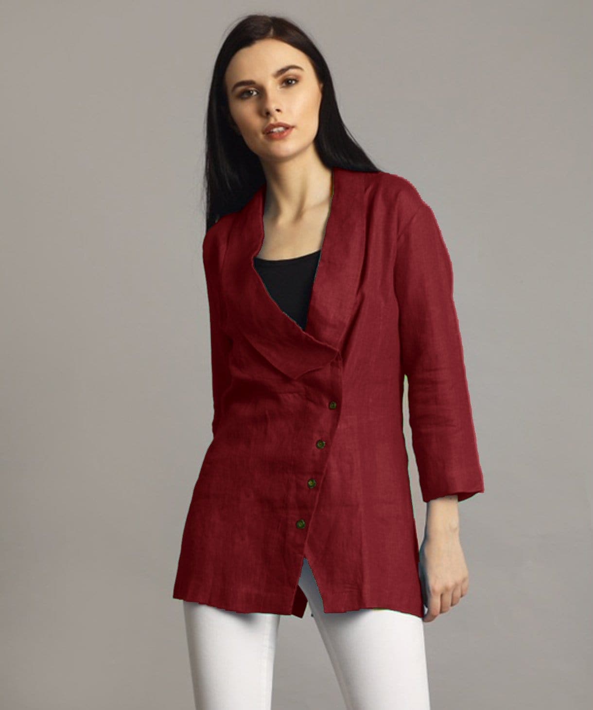 Home Tops Maroon Linen Jacket Style Tunic Top for Women Casual Wear