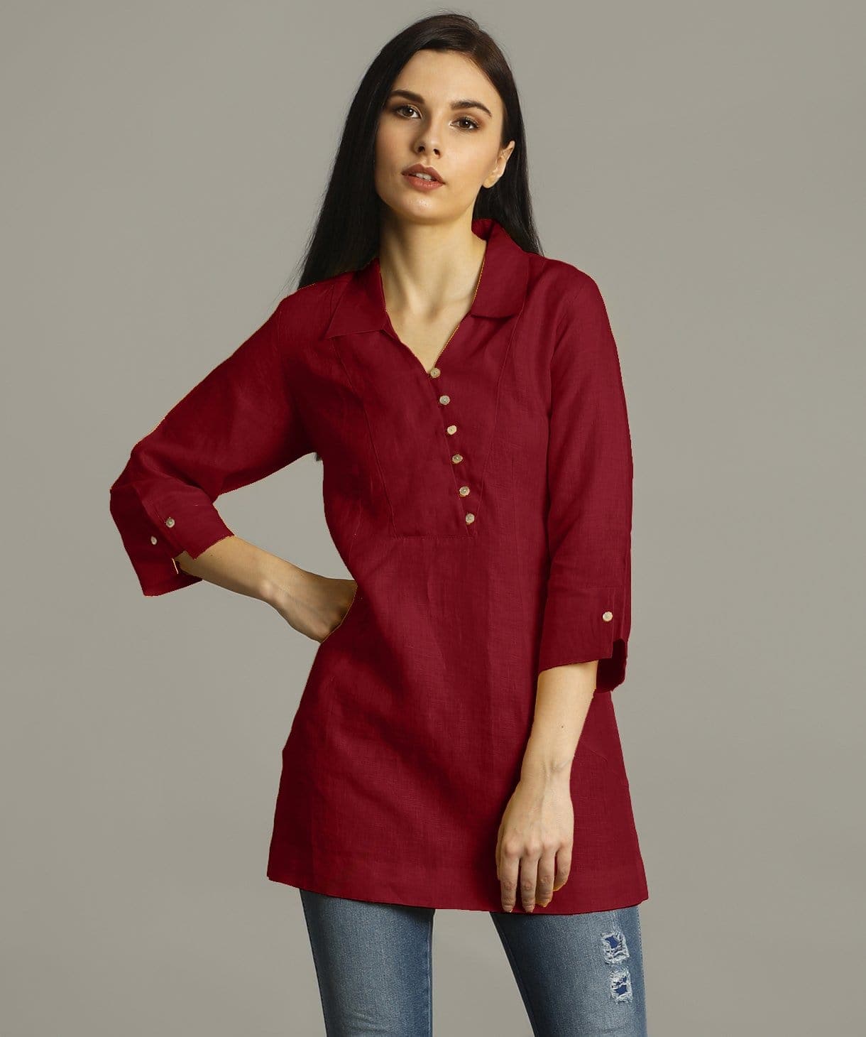 Be the first to review “Maroon Polo Neck Linen Tunic Top for Women Casual Wear” Cancel reply