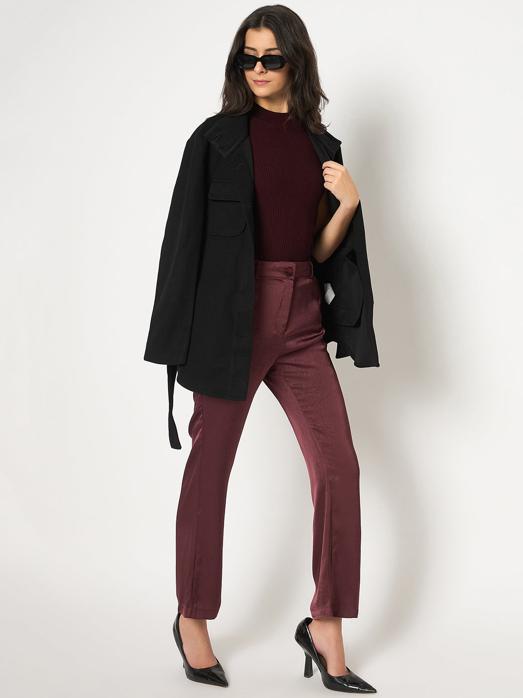 Maroon Straight Fit Women Trousers Elegant Formal Style