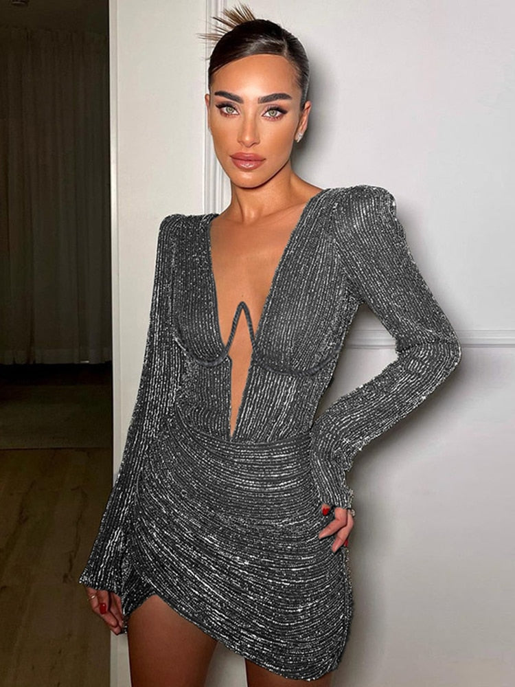 Waistline: Natural FactorsType: RegularSleeve Style: RegularSleeve Length: FullPattern Type: SolidNeckline: V-NeckMaterial Composition: Synthetic fiberMaterial: Polyester, SpandexFit Type: Slim FitFabric Type: KnittingElasticity: High StretchDresses Length: Above Knee, MiniDecoration:?PatternClosure Type: Pullover?