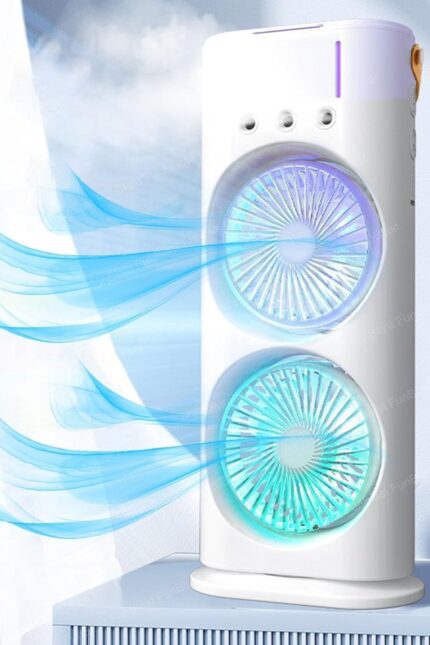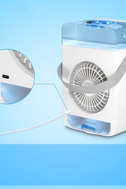 Enjoy natural air conditioning with this evaporative cooler that uses water vapor to humidify and cool the air. Say goodbye to dryness with refreshing airflow, infused with optional fragrance for a soothing environment. Ideal for dry climates, this mini AC fan provides quiet, gentle airflow for a relaxed, comfortable atmosphere at work, study, or home. This mini cooler features a detachable 280ml water tank that’s easy to clean and refill. Add ice cubes for an extra chill effect. A built-in handle allows easy portability, making it great for home use, desk spaces, car backseats, picnics, or even as a travel cooler.